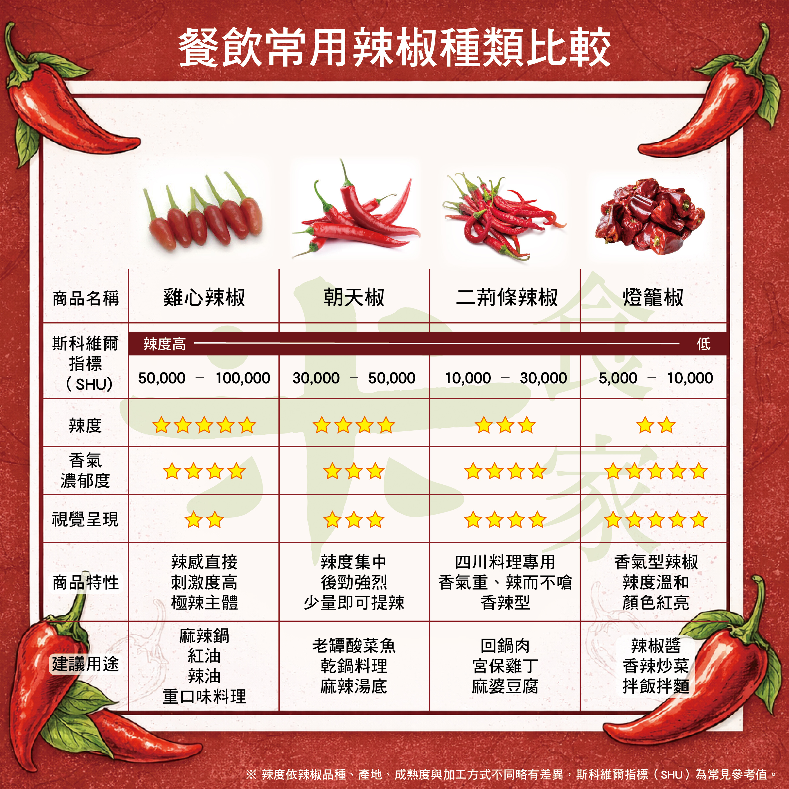 ▪ 由新鮮雞心辣椒天然乾燥研磨製成,比朝天椒辣一個等級。